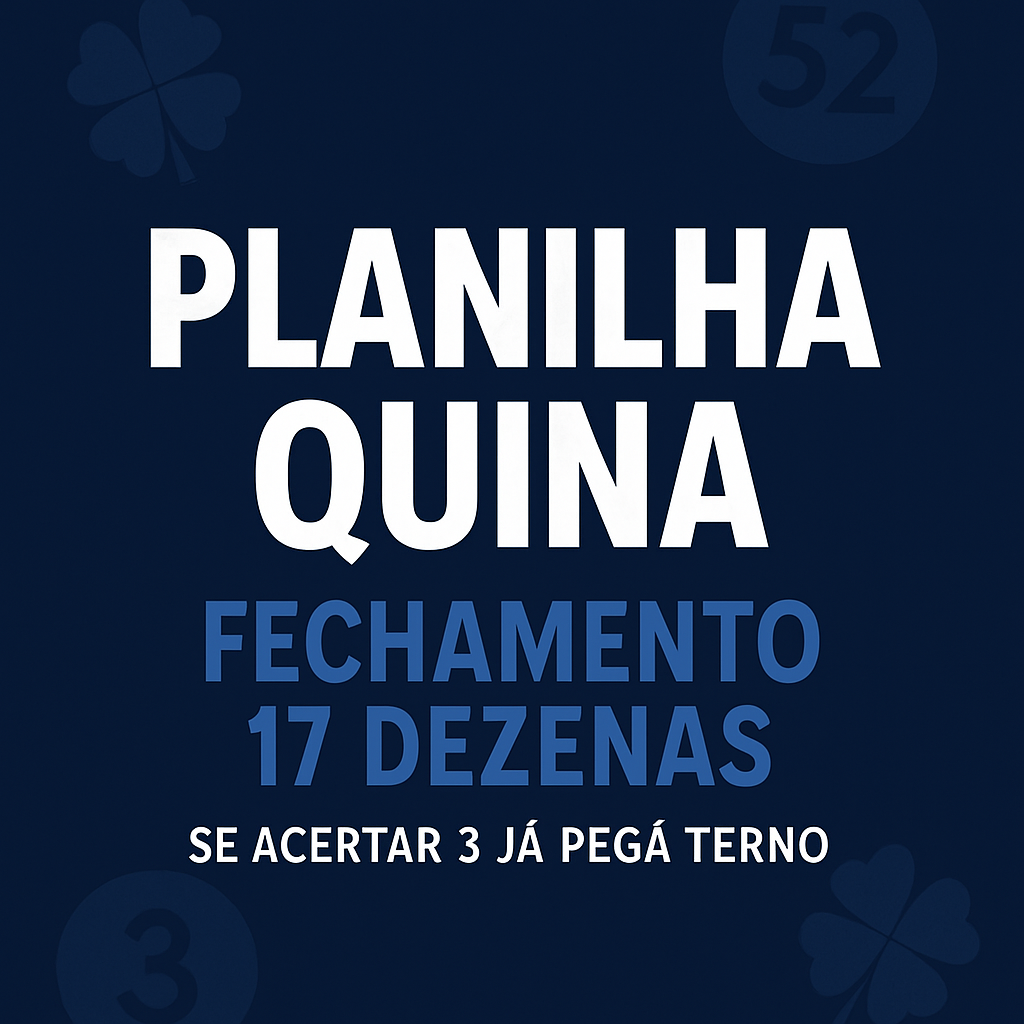 Se você é daqueles que não querem depender só da sorte, essa planilha é para você! Desenvolvemos uma ferramenta inteligente, baseada em fechamento matemático, que combina 17 dezenas de forma altamente otimizada para aumentar suas chances na Quina.